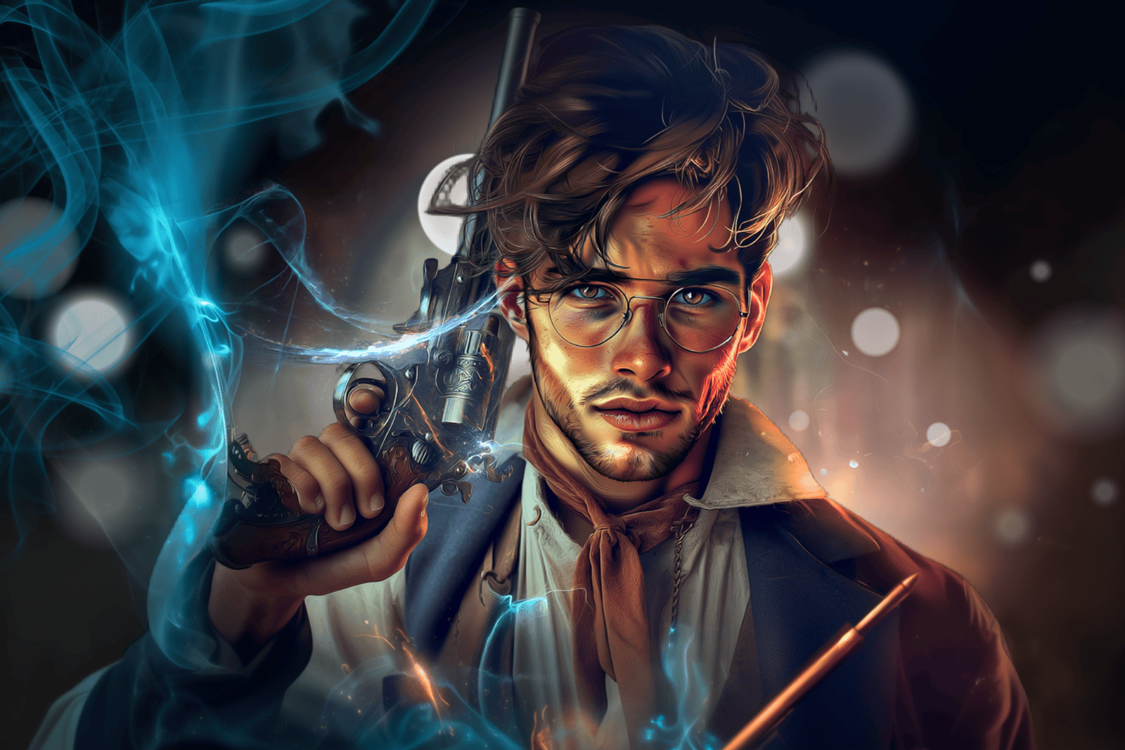 Magitech is a term I didn't even know existed until I began researching! As the name implies, it is a mix of magic and technology. Tobias (above) is giving us his smolder while holding his fyre pistols!